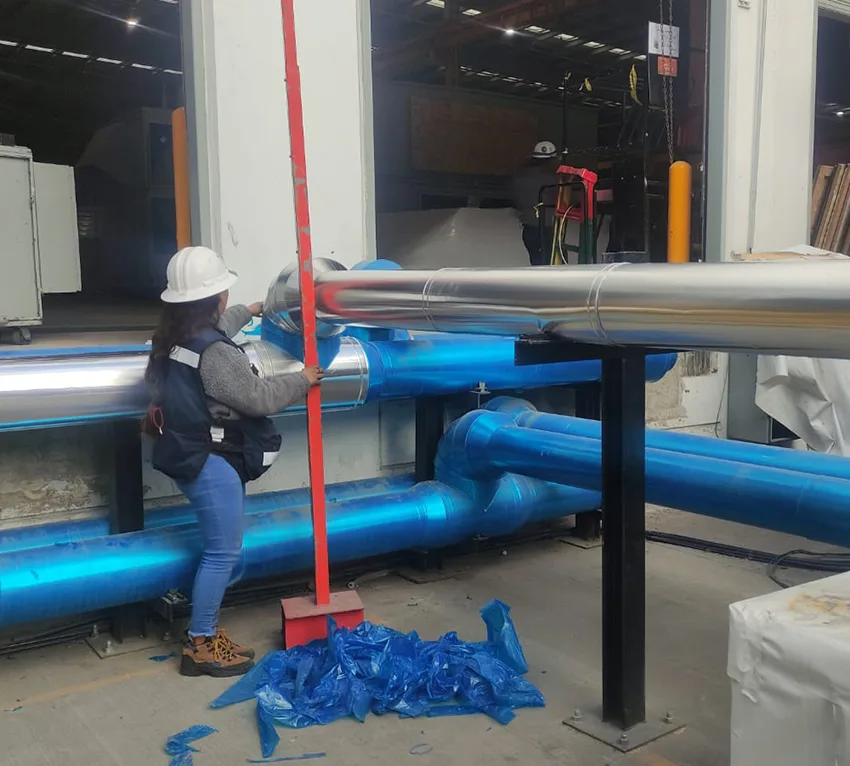 Insulación con recubierta de lámina de acero inoxidable.